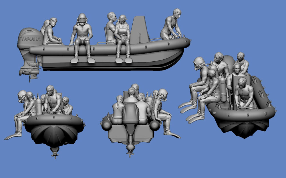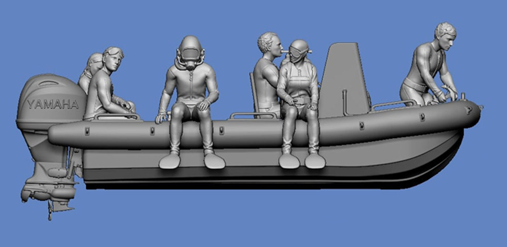 Taucher mit Festkörperschlauchboot
